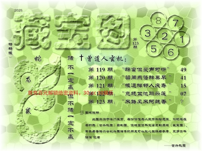 本站所有资料开奖日21:00永久锁定,锁定后无法再编辑,请各位高手务必在开奖日21:00之前更新好资料